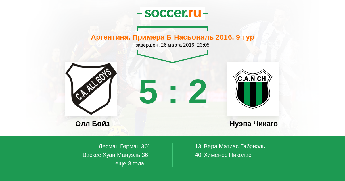 Протокол матча Олл Бойз против Нуэва Чикаго