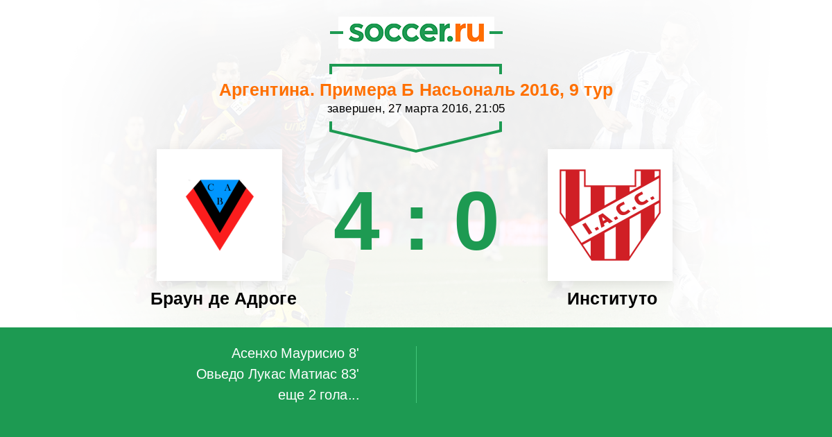 Протокол матча Браун де Адроге против Институто