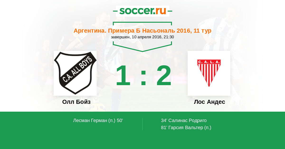 Протокол матча Олл Бойз против Лос Андес