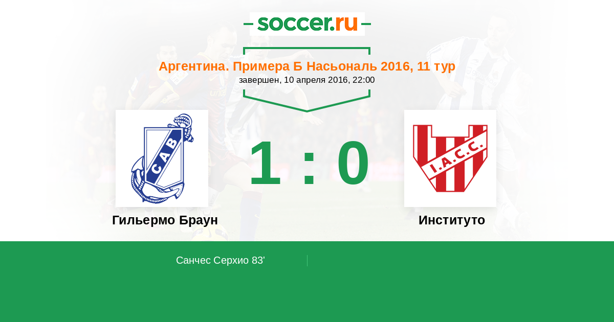 Протокол матча Гильермо Браун против Институто