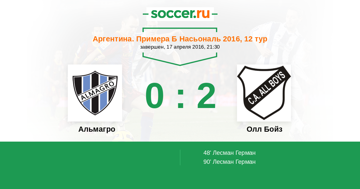 Протокол матча Альмагро против Олл Бойз