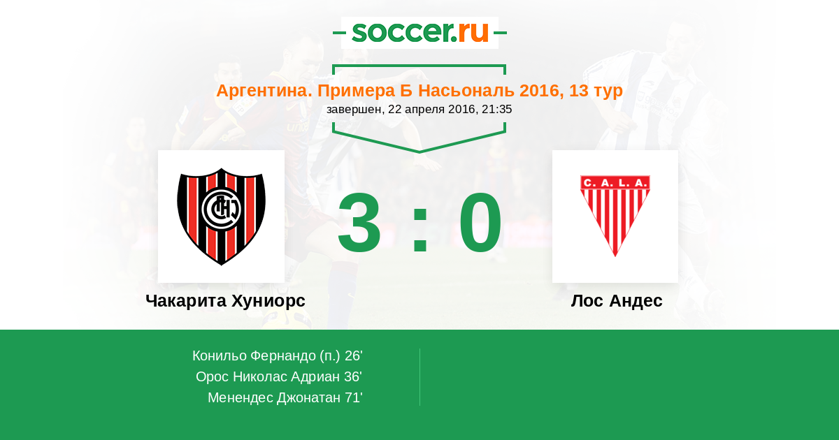 Протокол матча Чакарита Хуниорс против Лос Андес