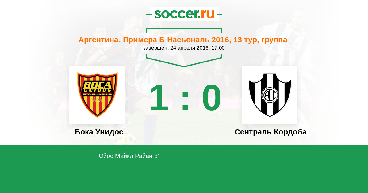 Протокол матча Бока Унидос против Сентраль Кордоба