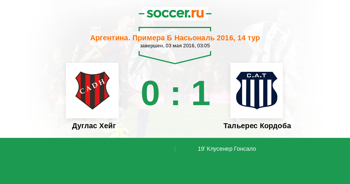 Протокол матча Дуглас Хейг против Тальерес Кордоба