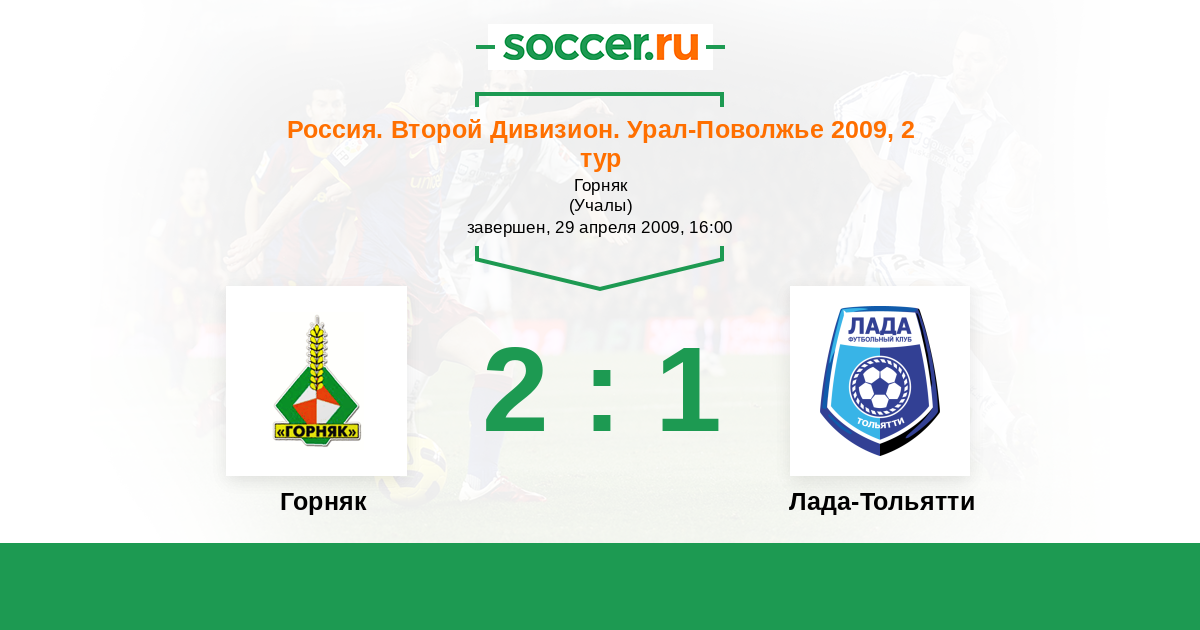 Россия. Вторая лига. Группа 4 08.08.2009 Лада-Тольятти Логотип футбольный клуб Лада-Тольятти 1:1 Логотип футбольный клуб Горняк (Учалы) Горняк