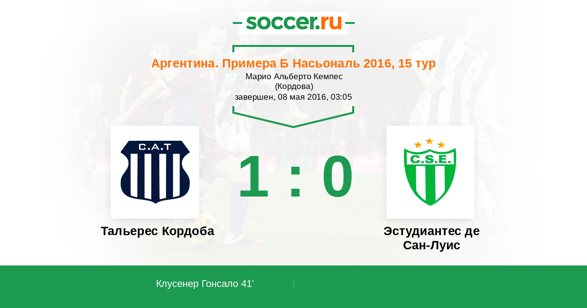 Протокол матча Тальерес Кордоба против Эстудиантес де Сан-Луис