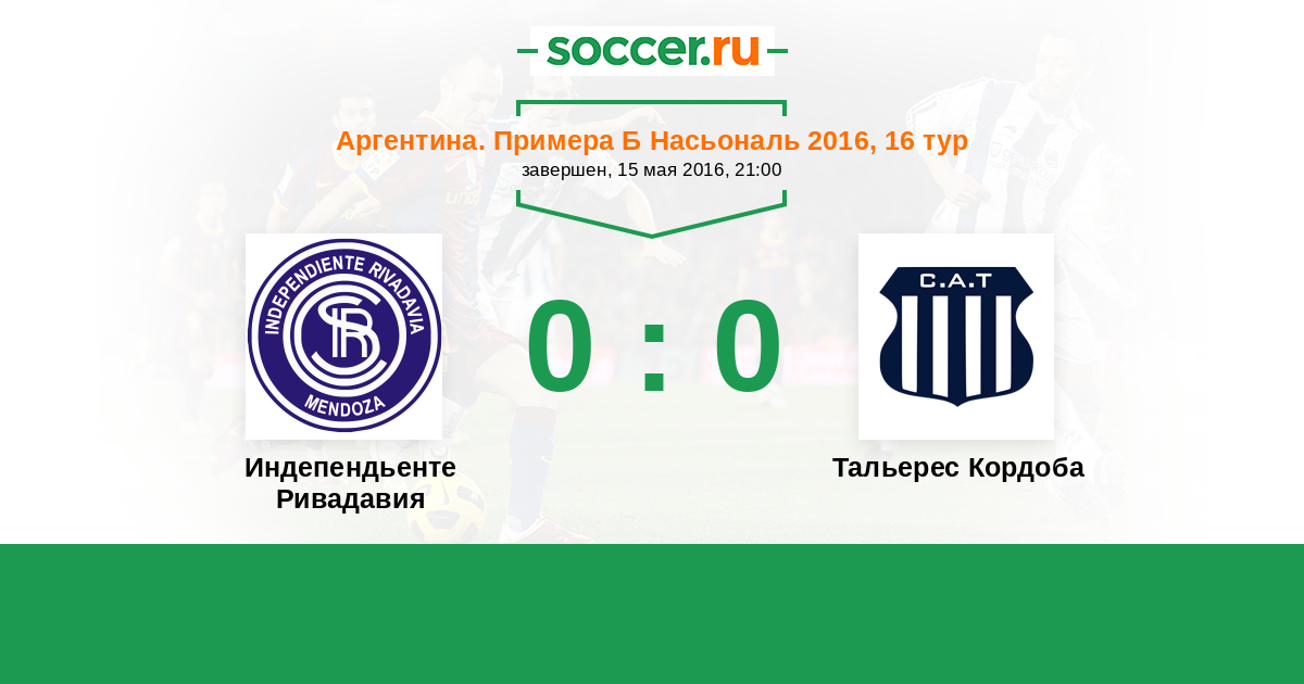 Протокол матча Индепендьенте Ривадавия против Тальерес Кордоба