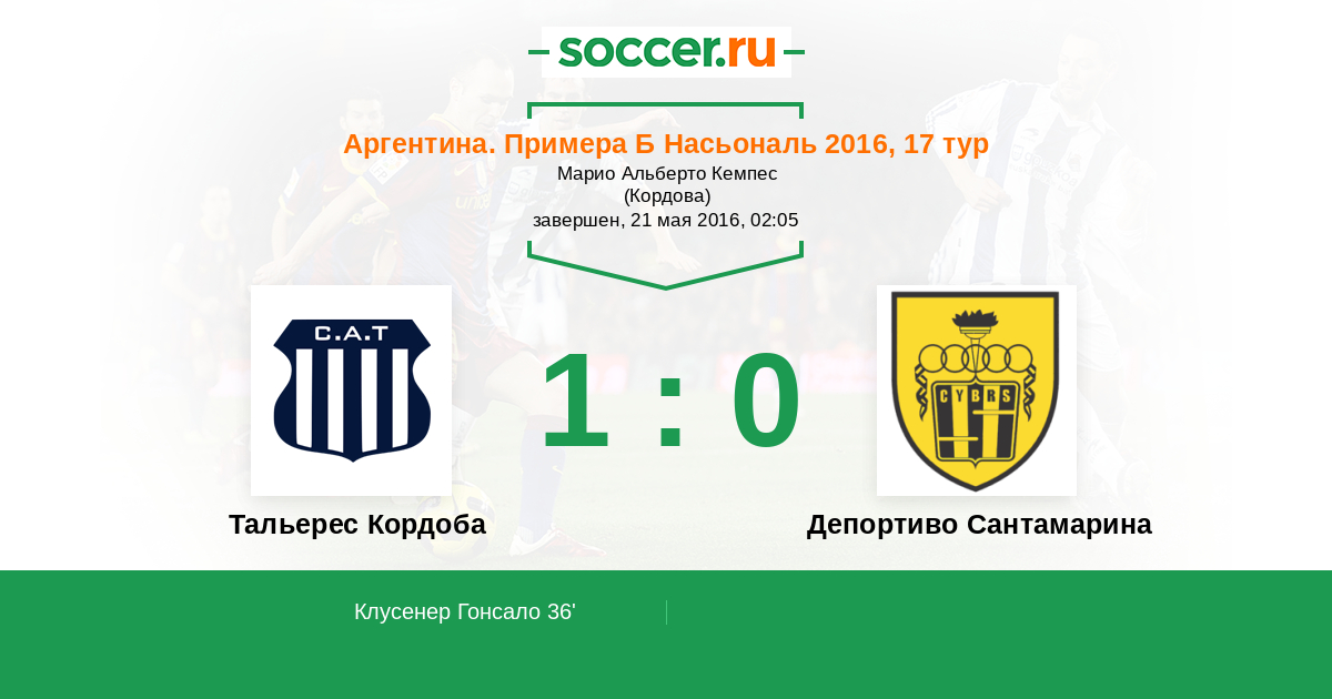 Протокол матча Тальерес Кордоба против Депортиво Сантамарина