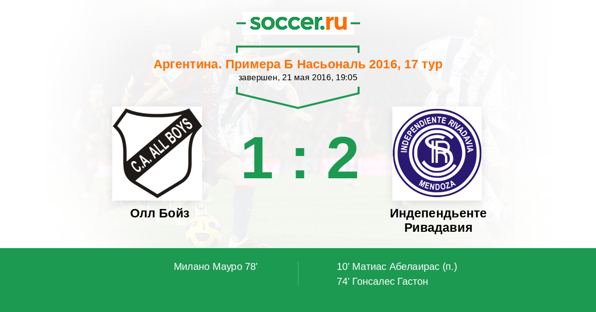 Протокол матча Олл Бойз против Индепендьенте Ривадавия