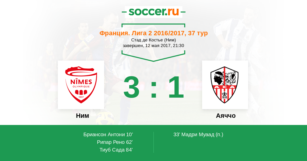 Протокол матча Ним против Аяччо