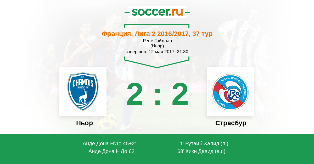 Протокол матча Ньор против Страсбур