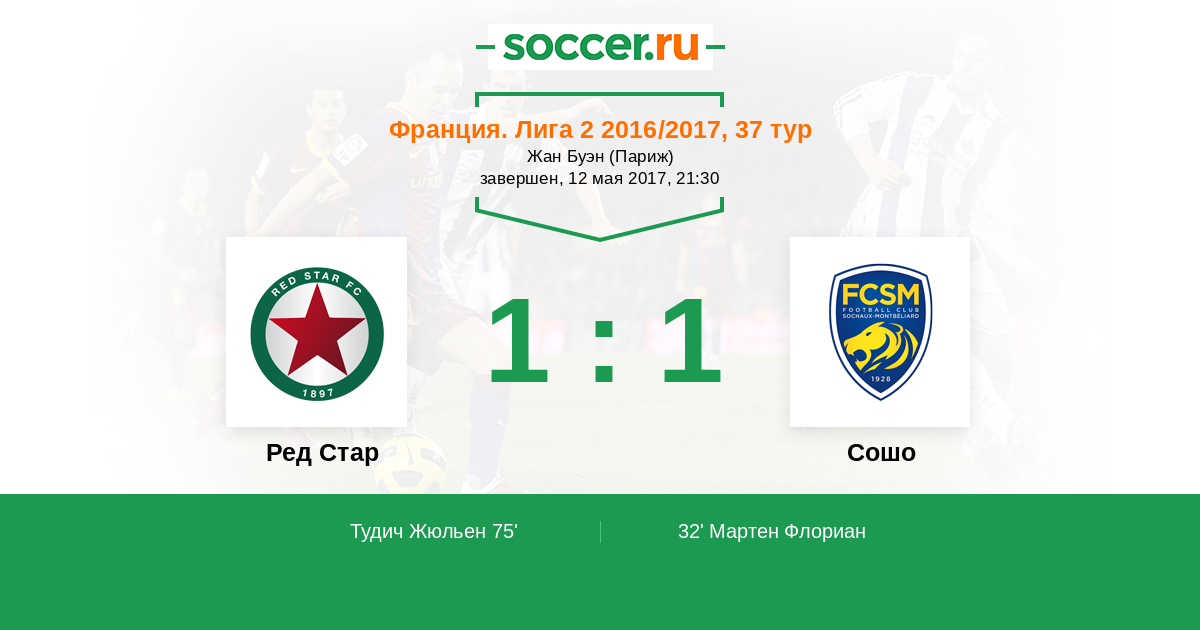 Протокол матча Ред Стар против Сошо