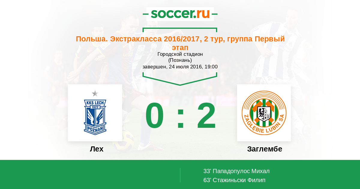 Протокол матча Лех против Заглембе