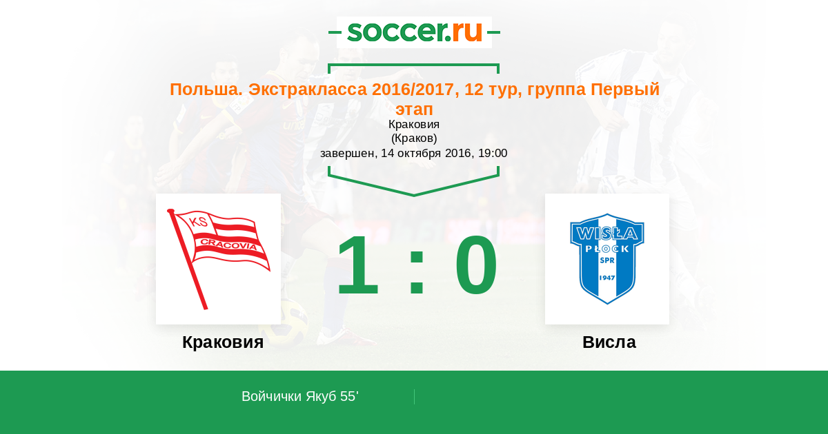 Протокол матча Краковия против Висла