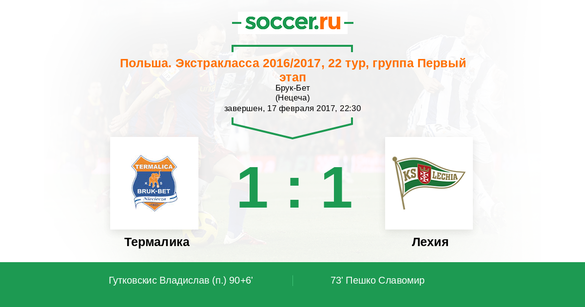 Протокол матча Термалика против Лехия