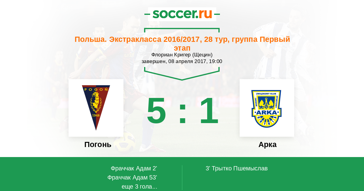 Протокол матча Погонь против Арка