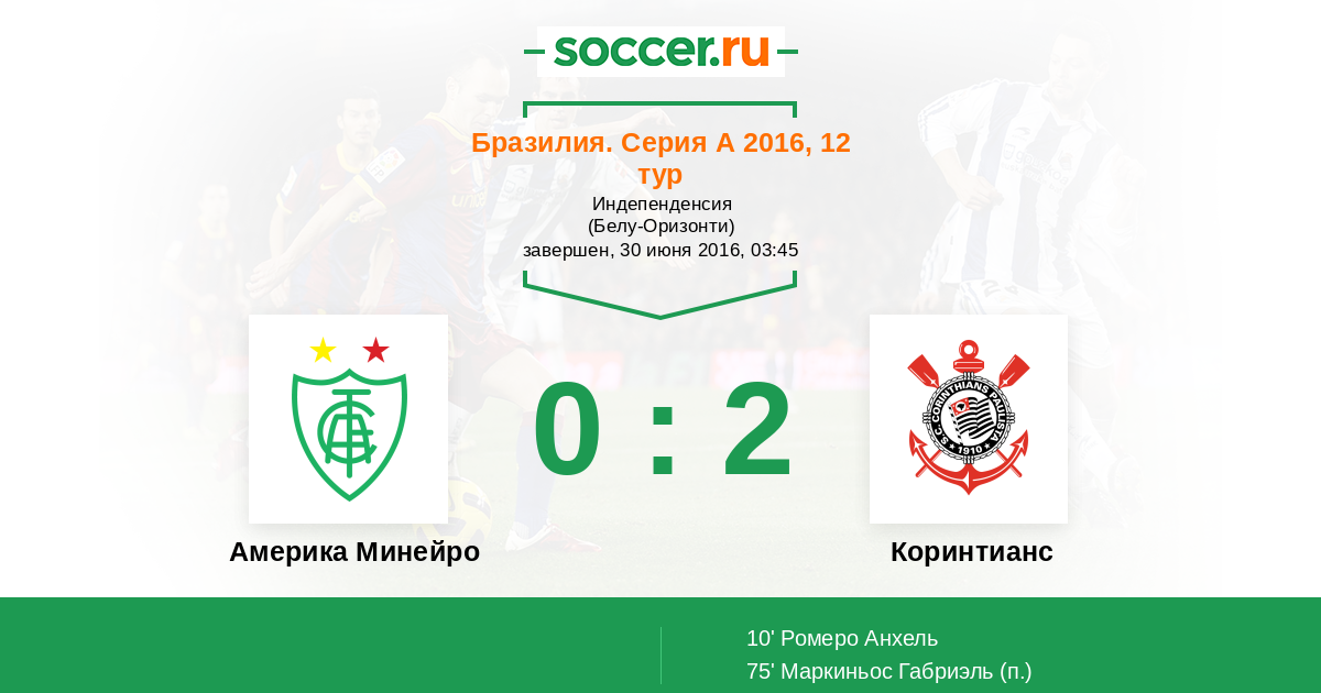 10' (0:1) Ромеро Анхель (11) (Бальбуэна Фабиан (4))