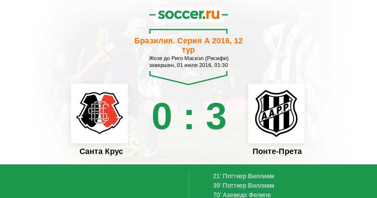 Протокол матча Санта Крус против Понте-Прета