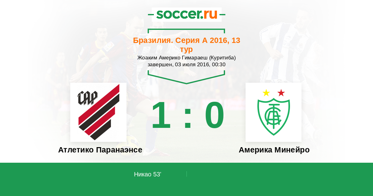 Протокол матча Атлетико Паранаэнсе против Америка Минейро