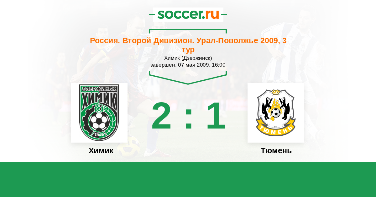 Россия. Вторая лига. Группа 4 16.08.2009 Тюмень Логотип футбольный клуб Тюмень 1:1 Логотип футбольный клуб Химик (Дзержинск) Химик