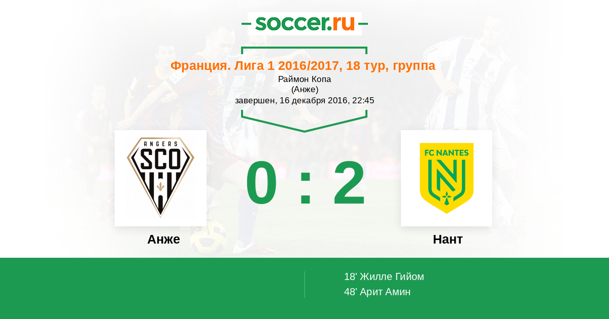 18' (0:1) Жилле Гийом (27) (Степински Мариуш (18))