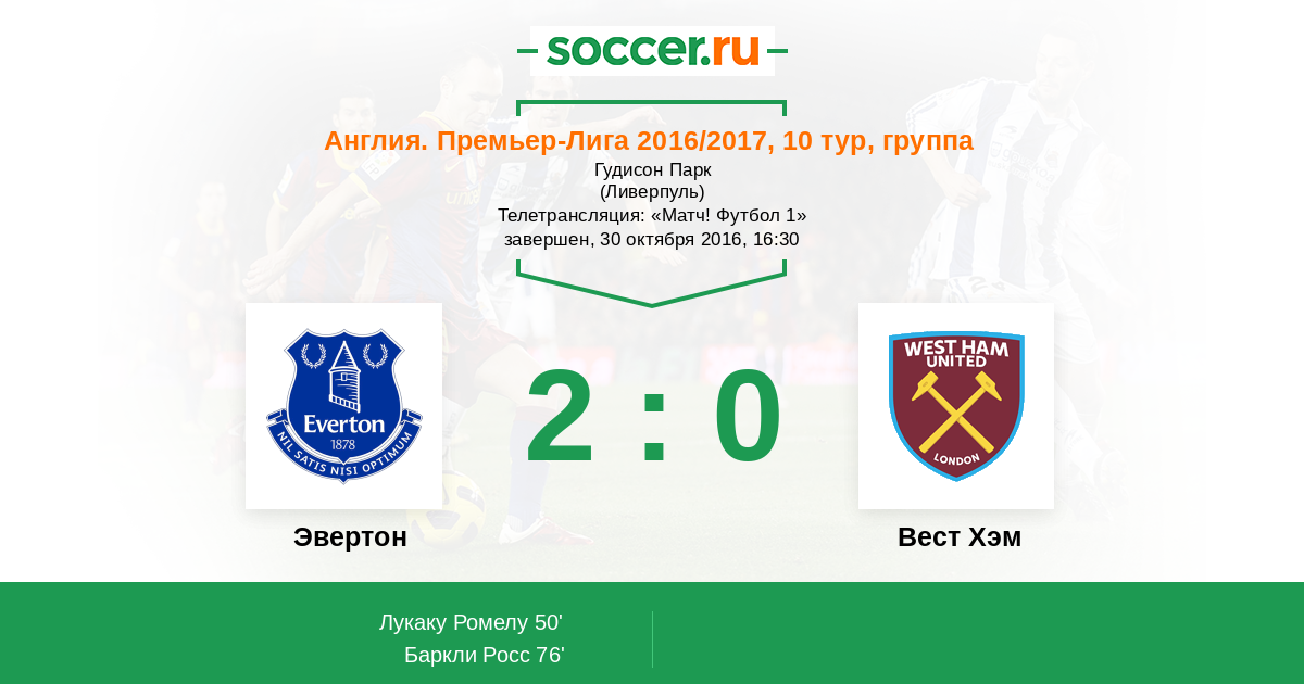 Протокол матча Эвертон против Вест Хэм