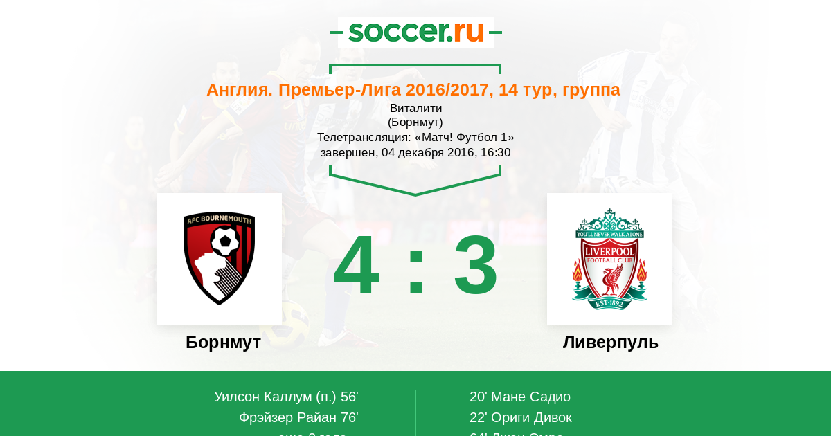 Протокол матча Борнмут против Ливерпуль