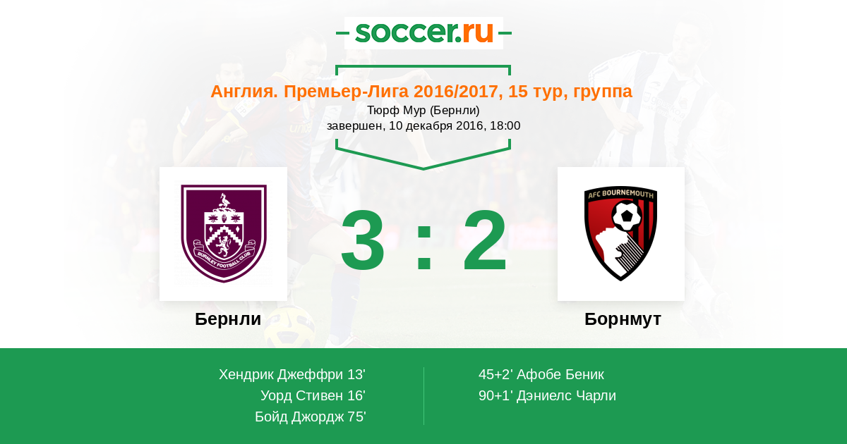 Протокол матча Бернли против Борнмут
