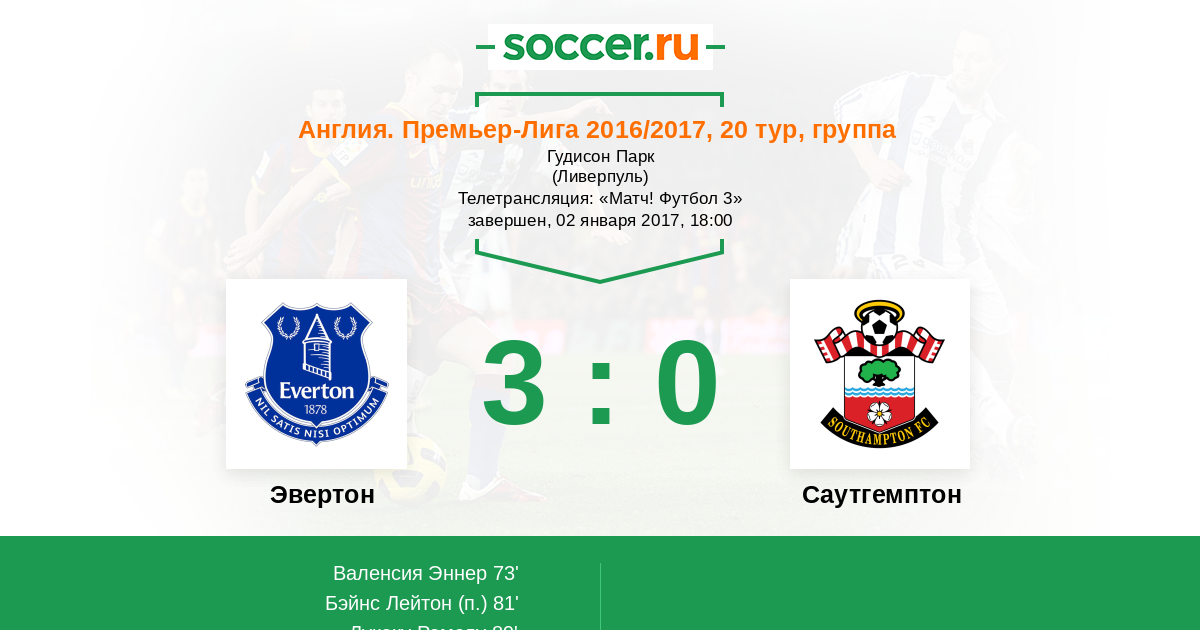Протокол матча Эвертон против Саутгемптон