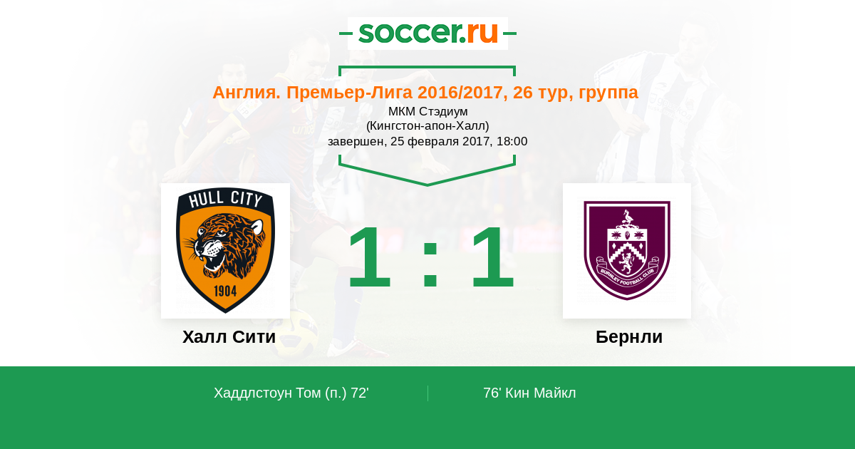 Протокол матча Халл Сити против Бернли