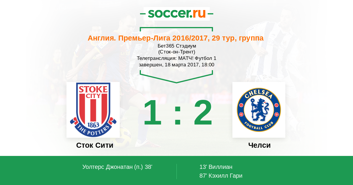 Протокол матча Сток Сити против Челси