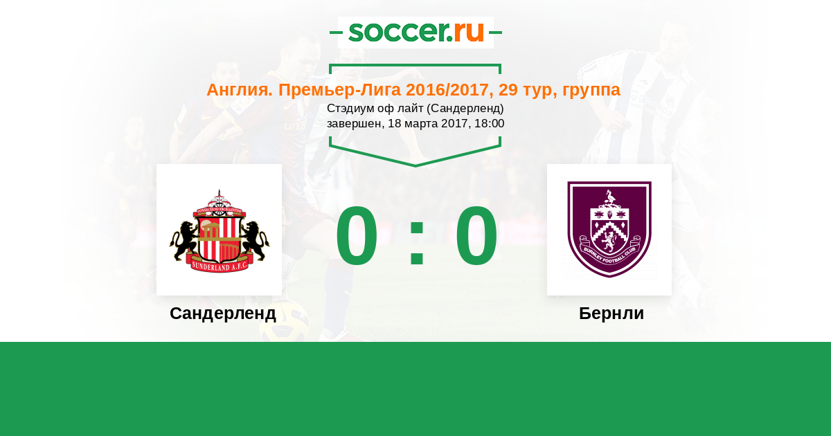 Протокол матча Сандерленд против Бернли