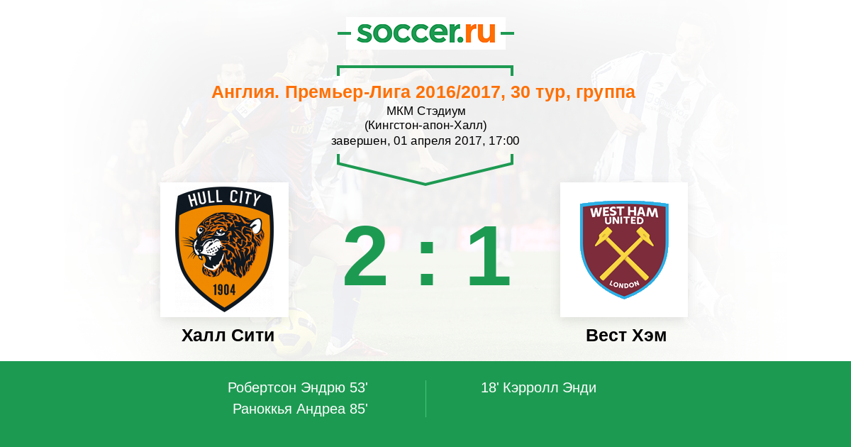 Протокол матча Халл Сити против Вест Хэм