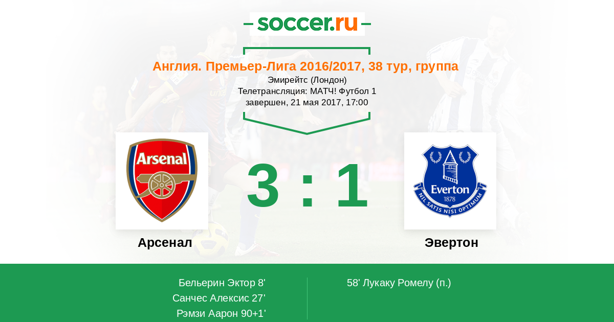 Протокол матча Арсенал против Эвертон