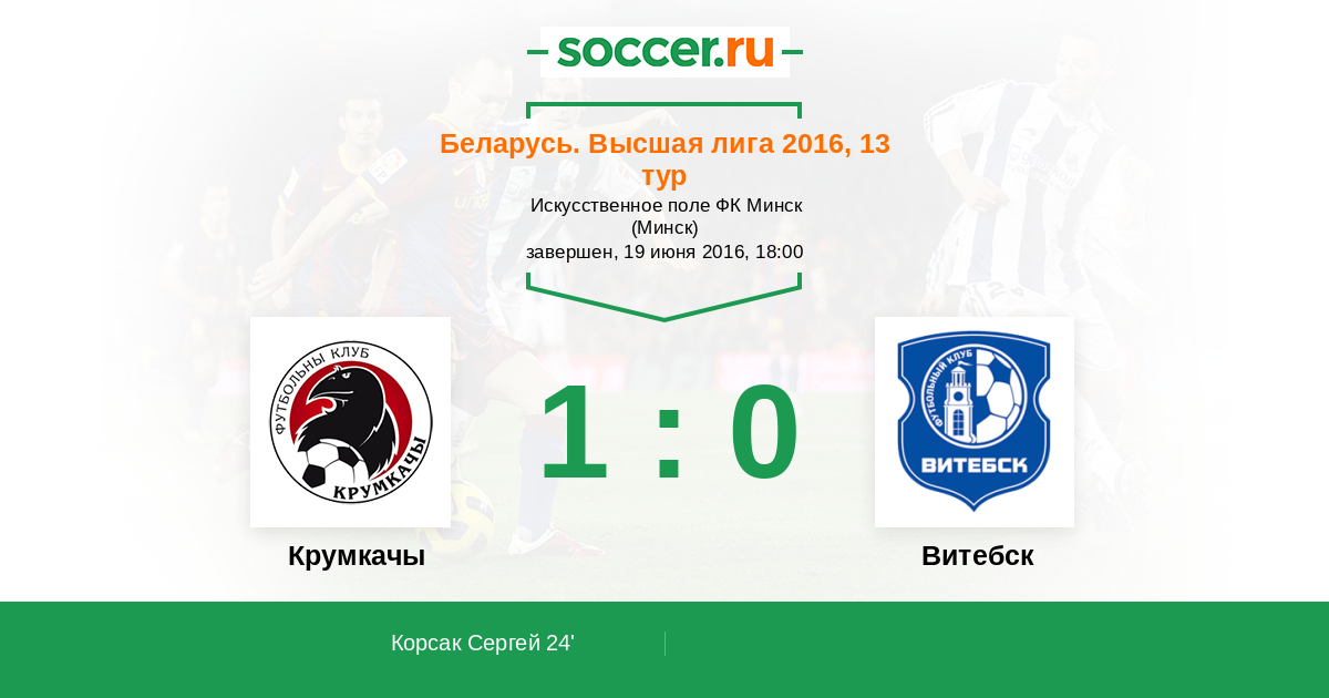Протокол матча Крумкачы против Витебск