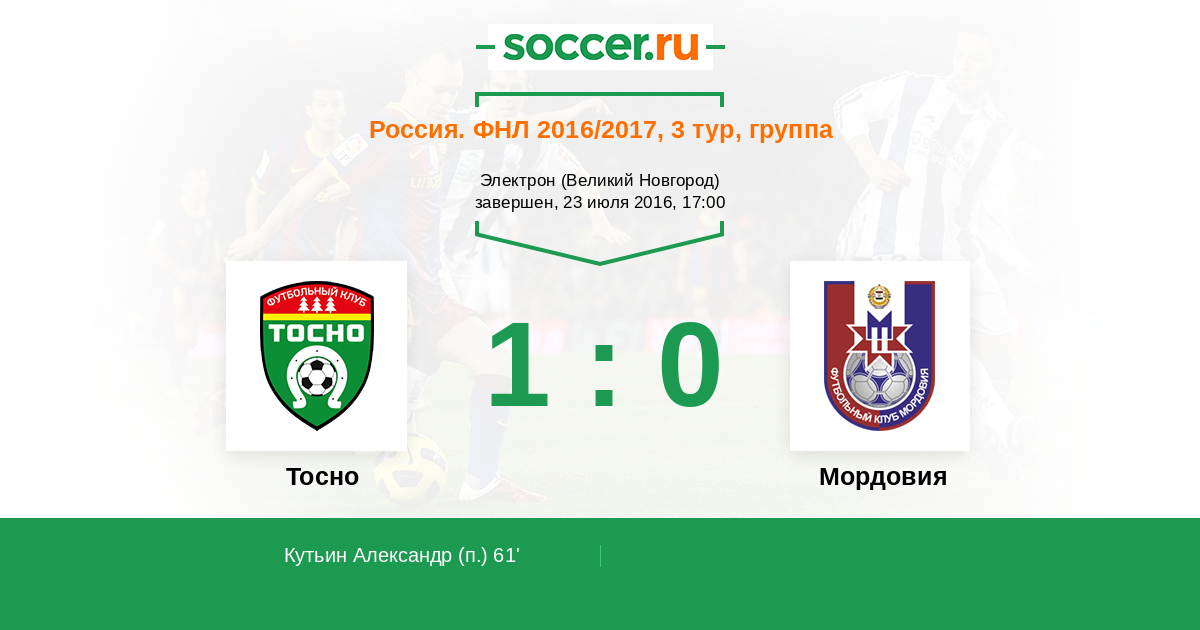Протокол матча Тосно против Мордовия