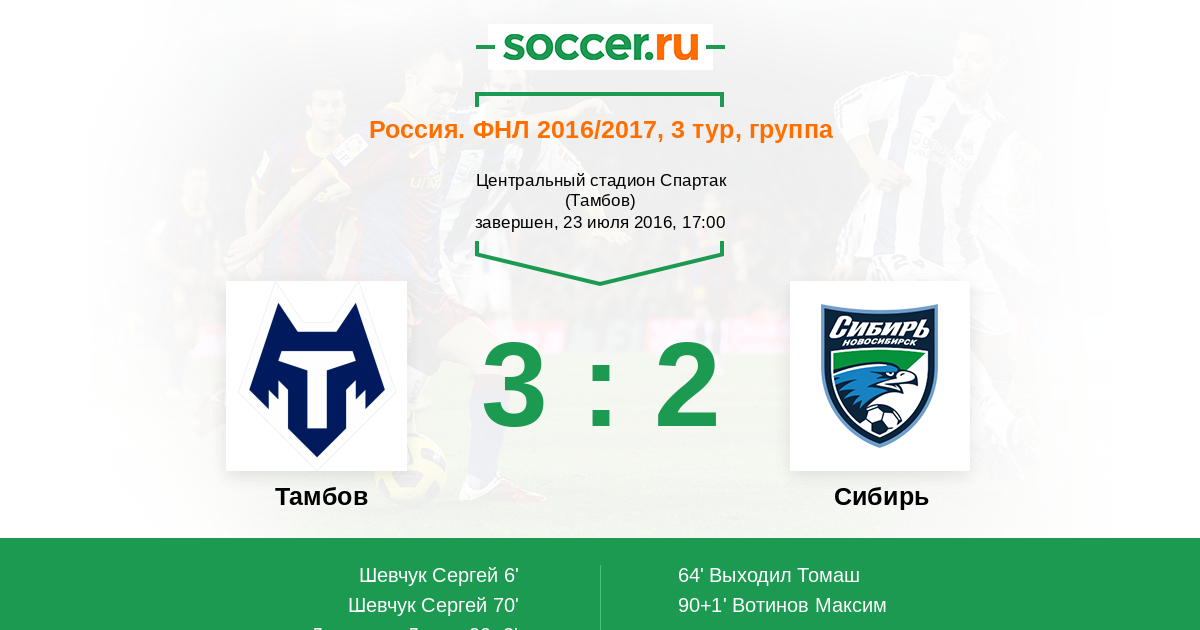 Протокол матча Тамбов против Сибирь