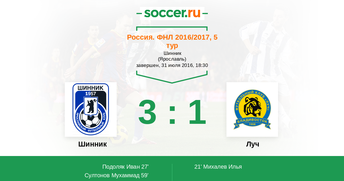 Протокол матча Шинник против Луч