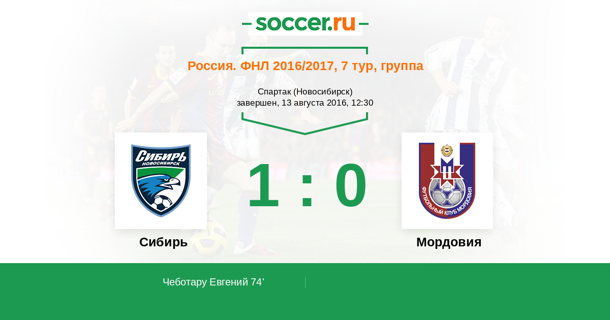Протокол матча Сибирь против Мордовия