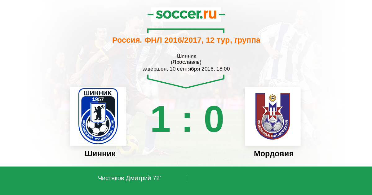Протокол матча Шинник против Мордовия