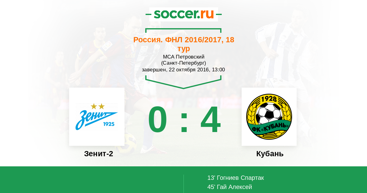 Протокол матча Зенит-2 против Кубань