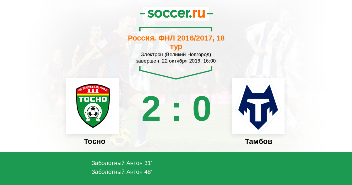 Протокол матча Тосно против Тамбов