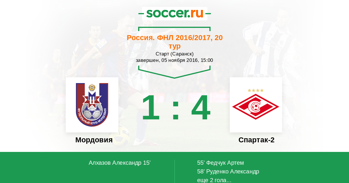 Протокол матча Мордовия против Спартак-2