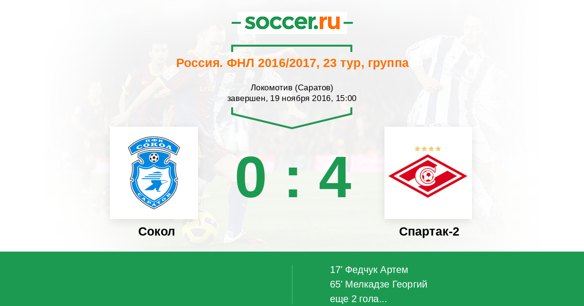 Протокол матча Сокол против Спартак-2