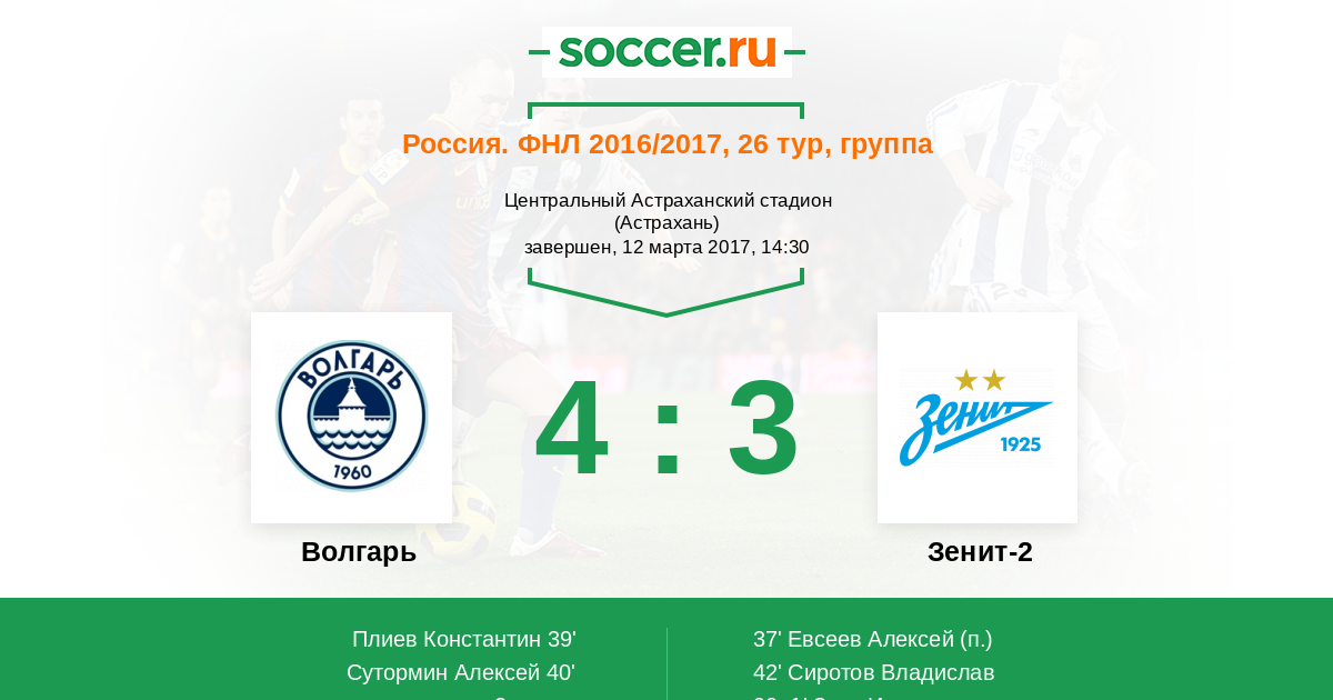 Протокол матча Волгарь против Зенит-2