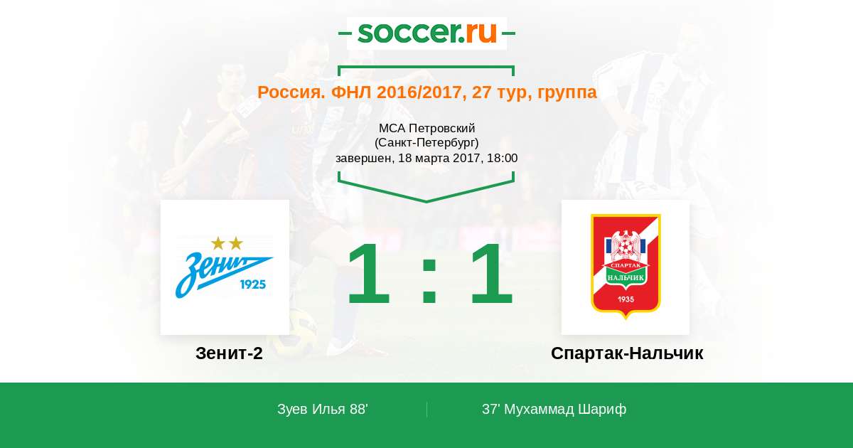Протокол матча Зенит-2 против Спартак-Нальчик
