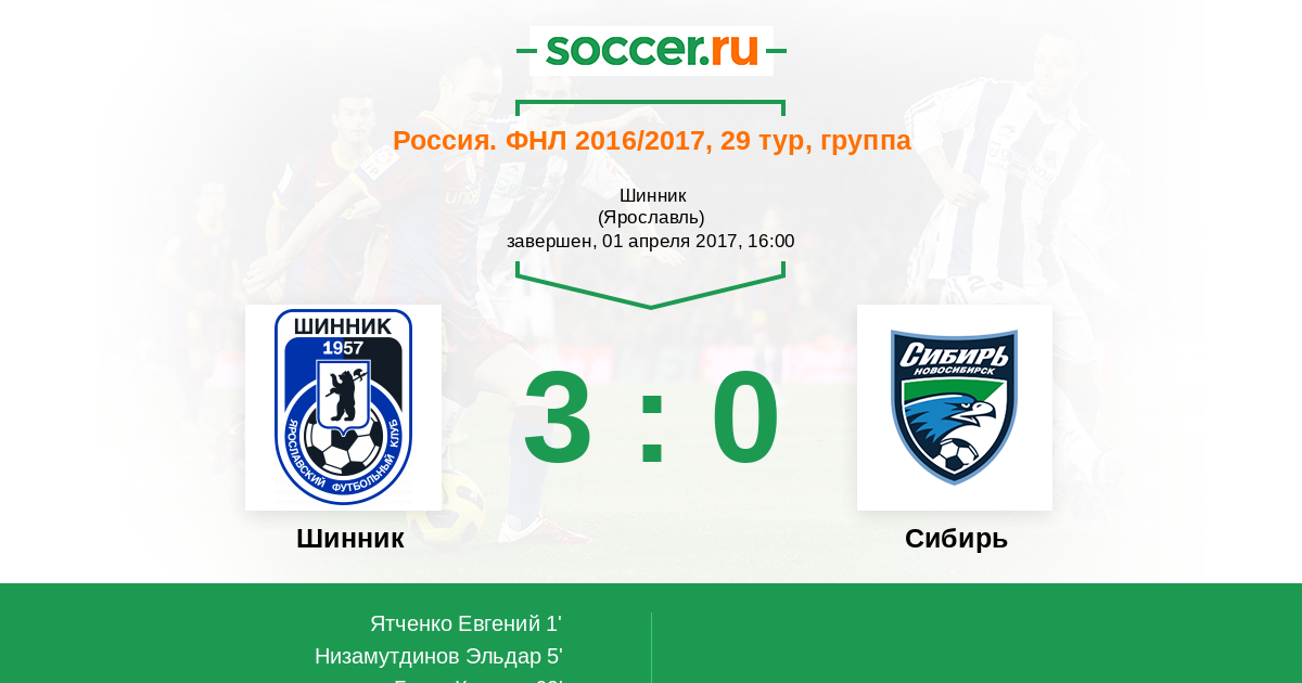 Протокол матча Шинник против Сибирь