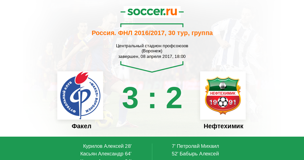 Протокол матча Факел против Нефтехимик