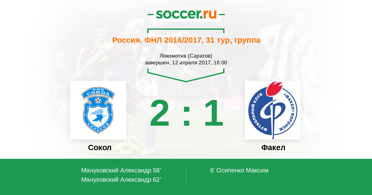 Протокол матча Сокол против Факел