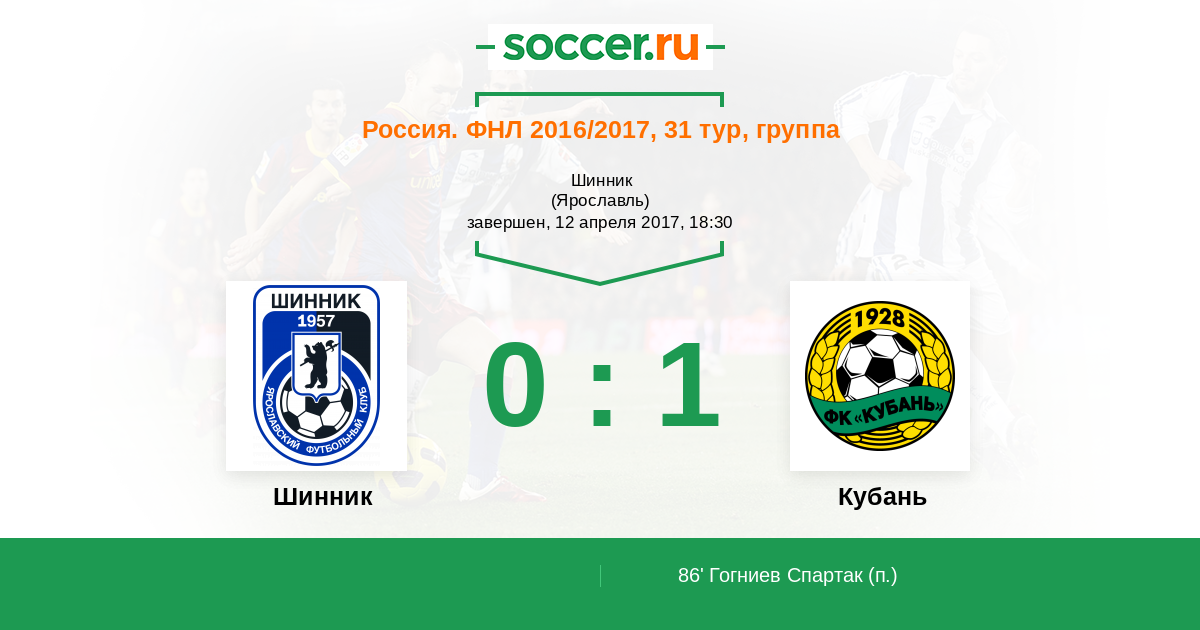 Протокол матча Шинник против Кубань